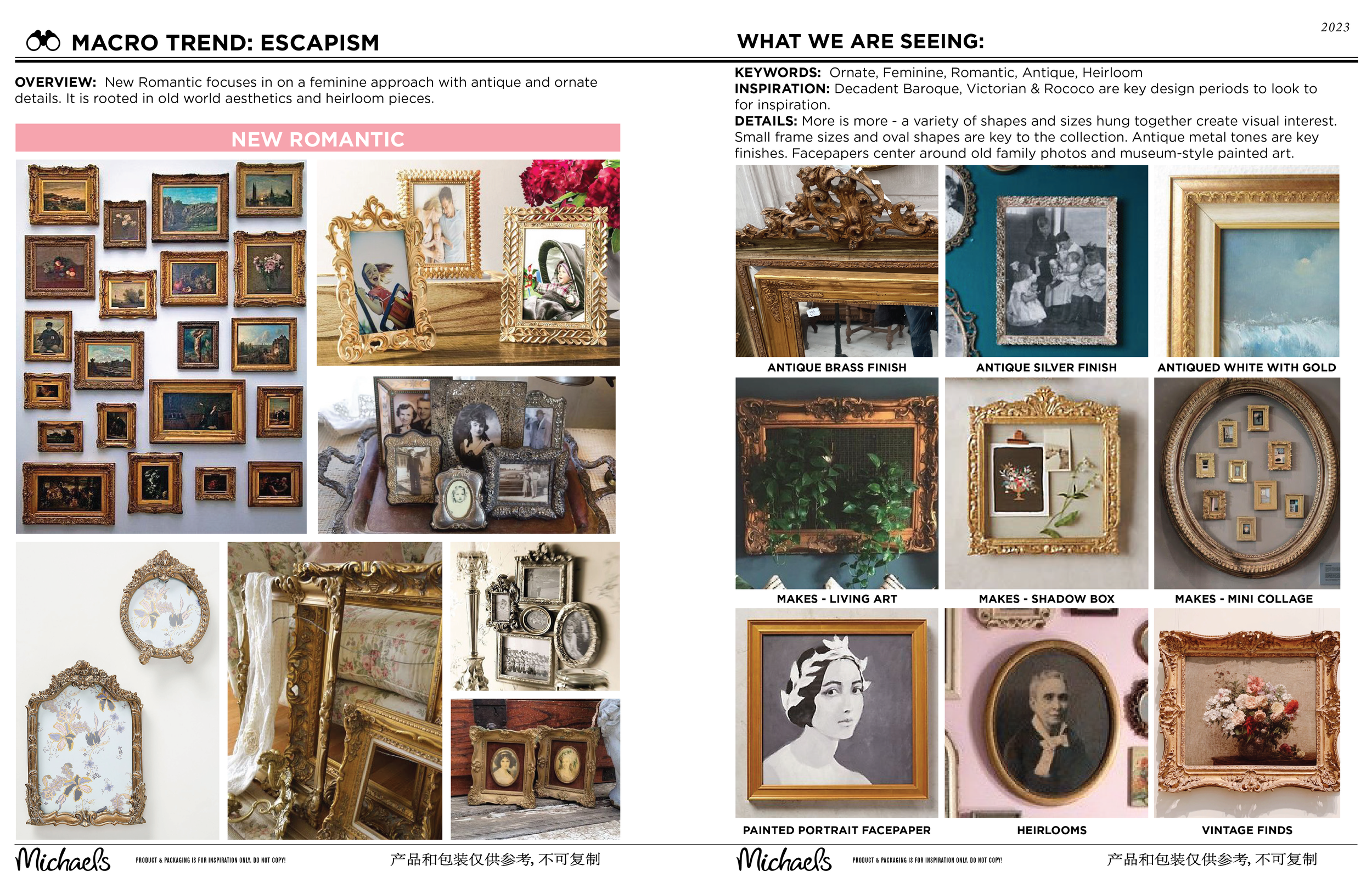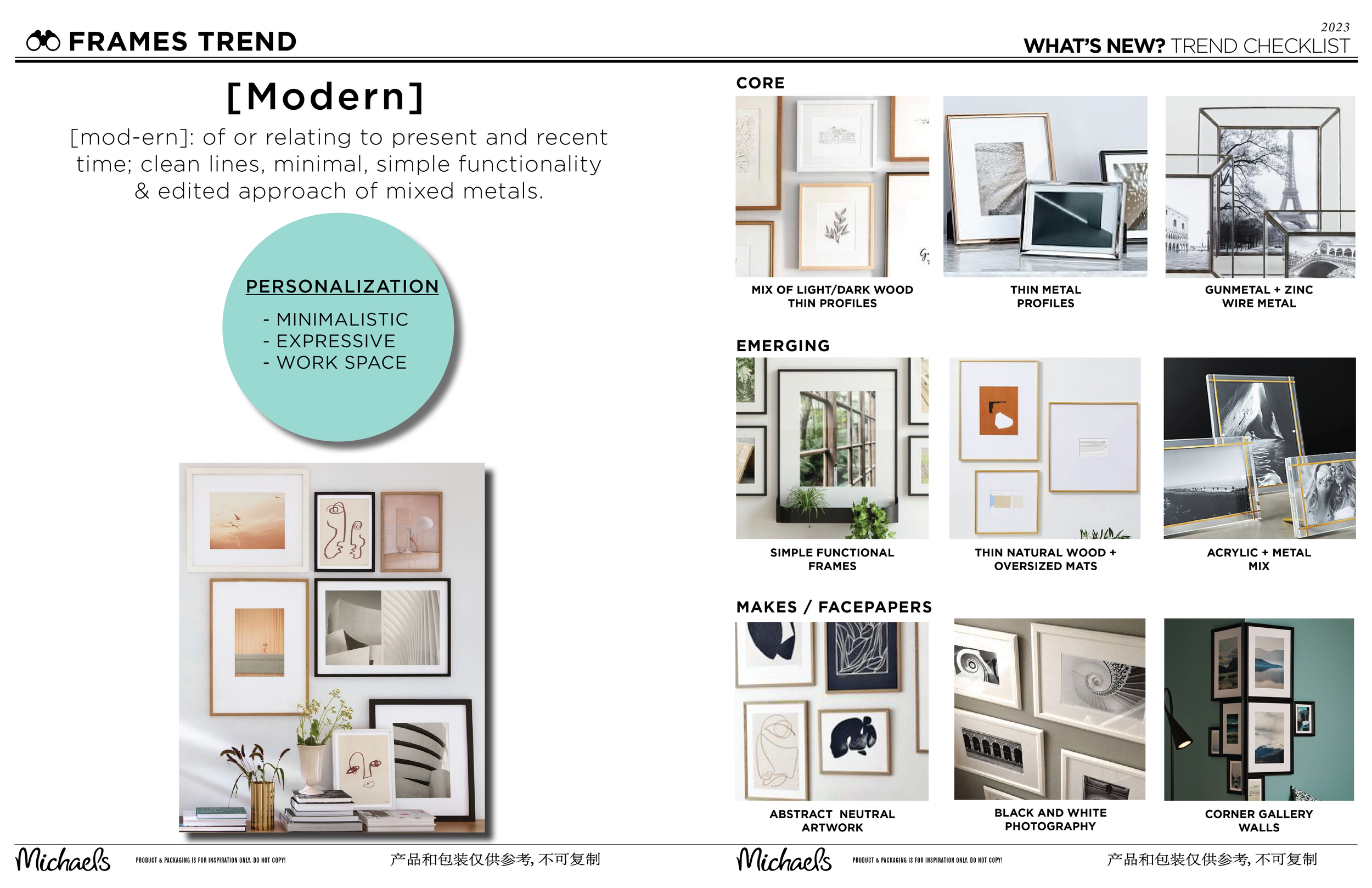 As a product designer at Michaels, I spearheaded a comprehensive research initiative to forecast Decor and Frame trends for the upcoming year.