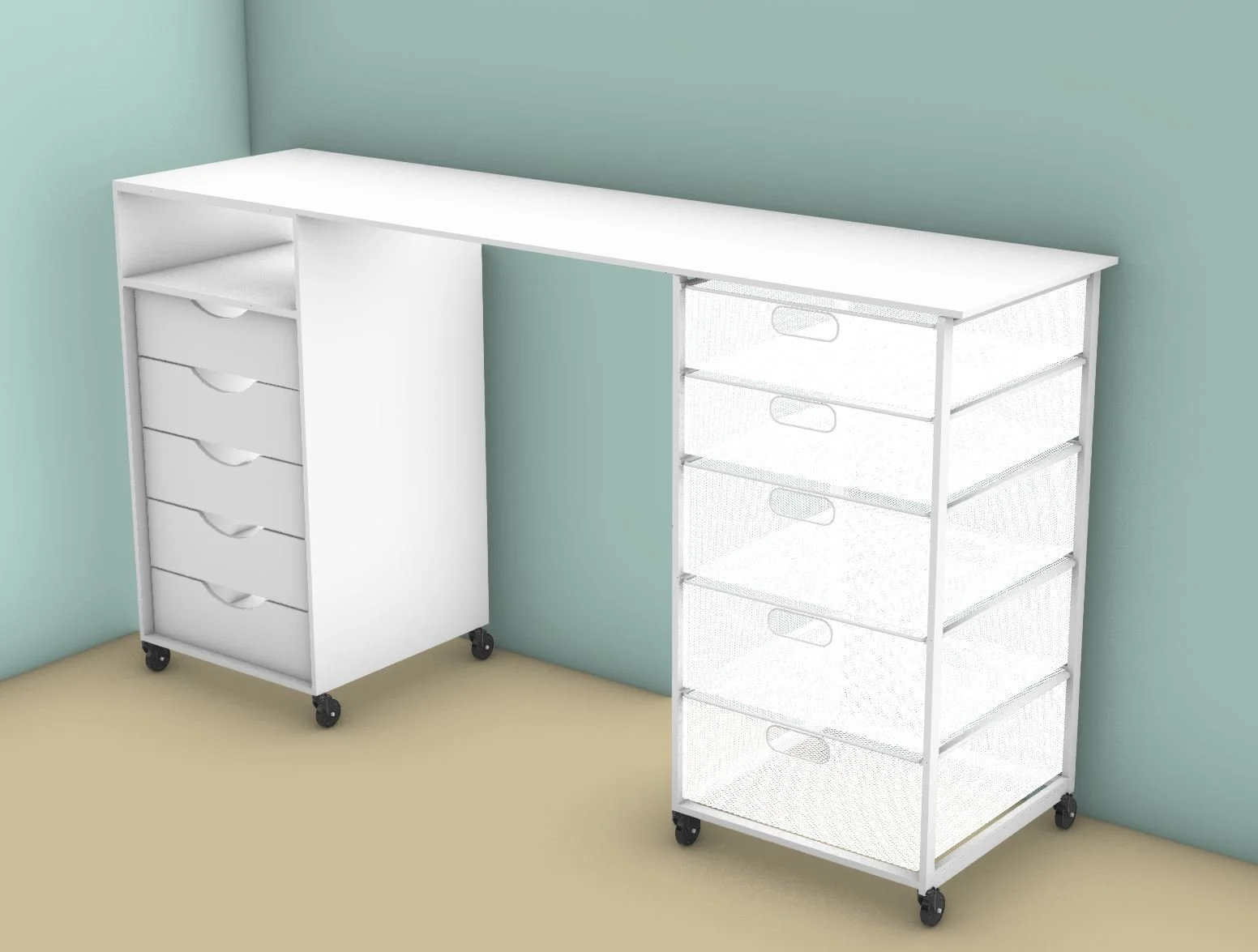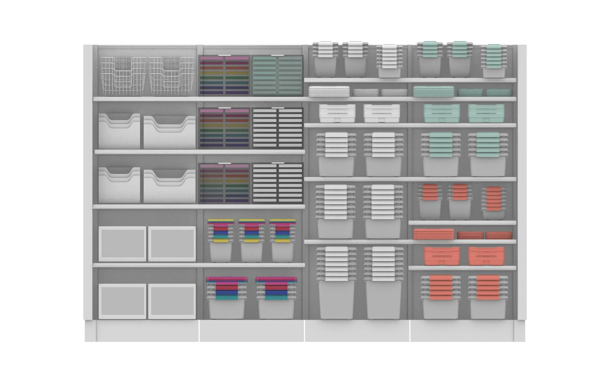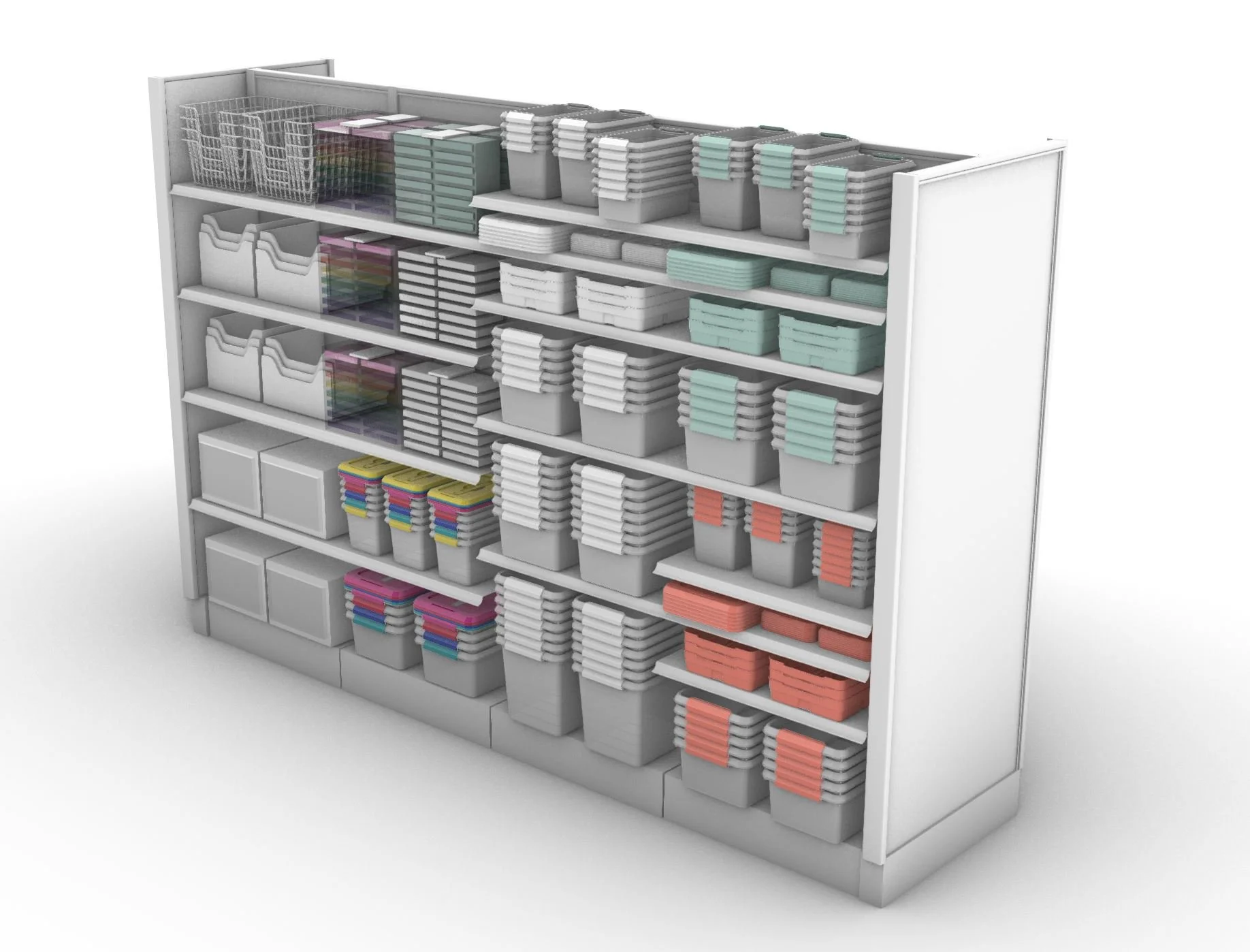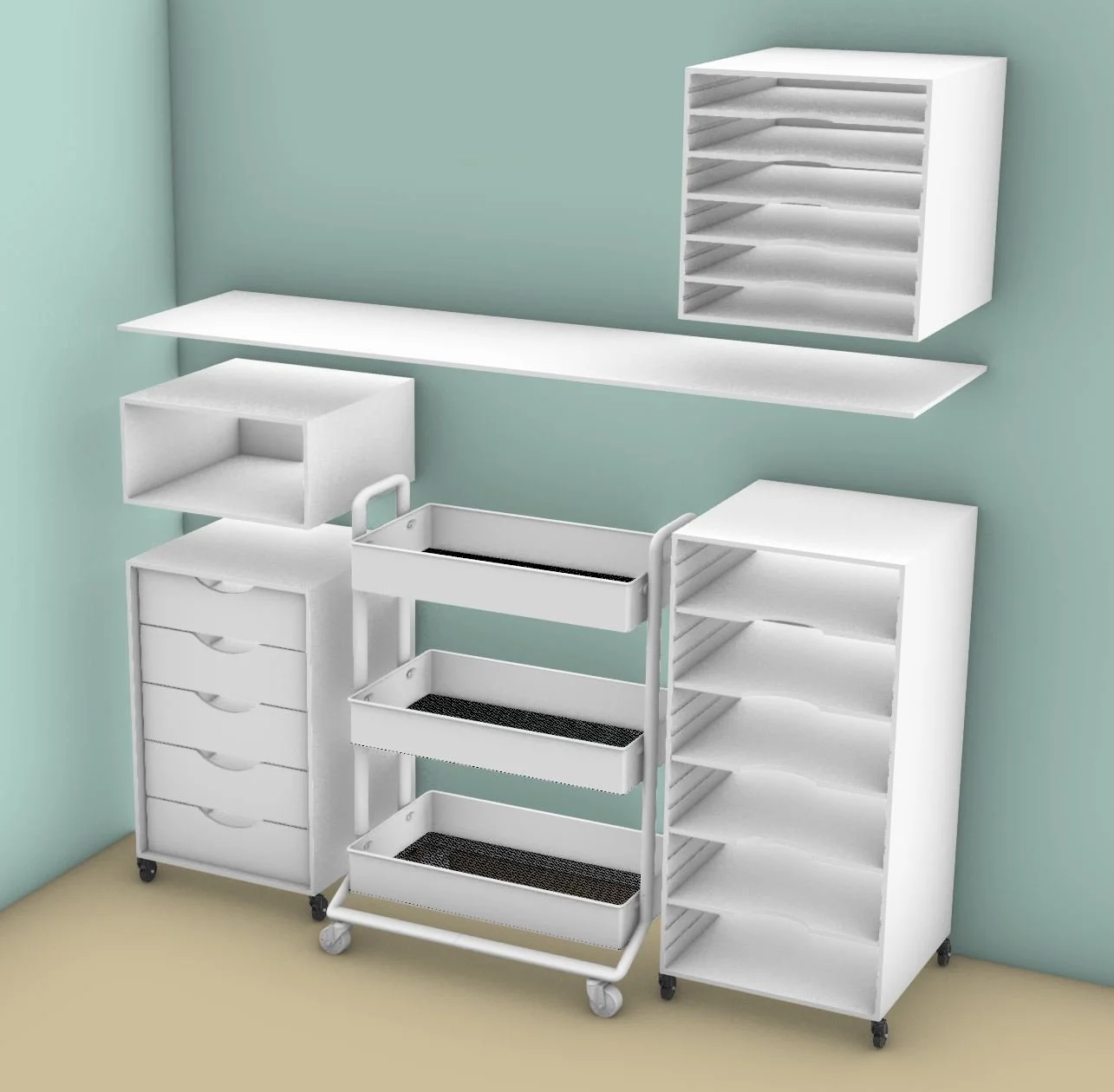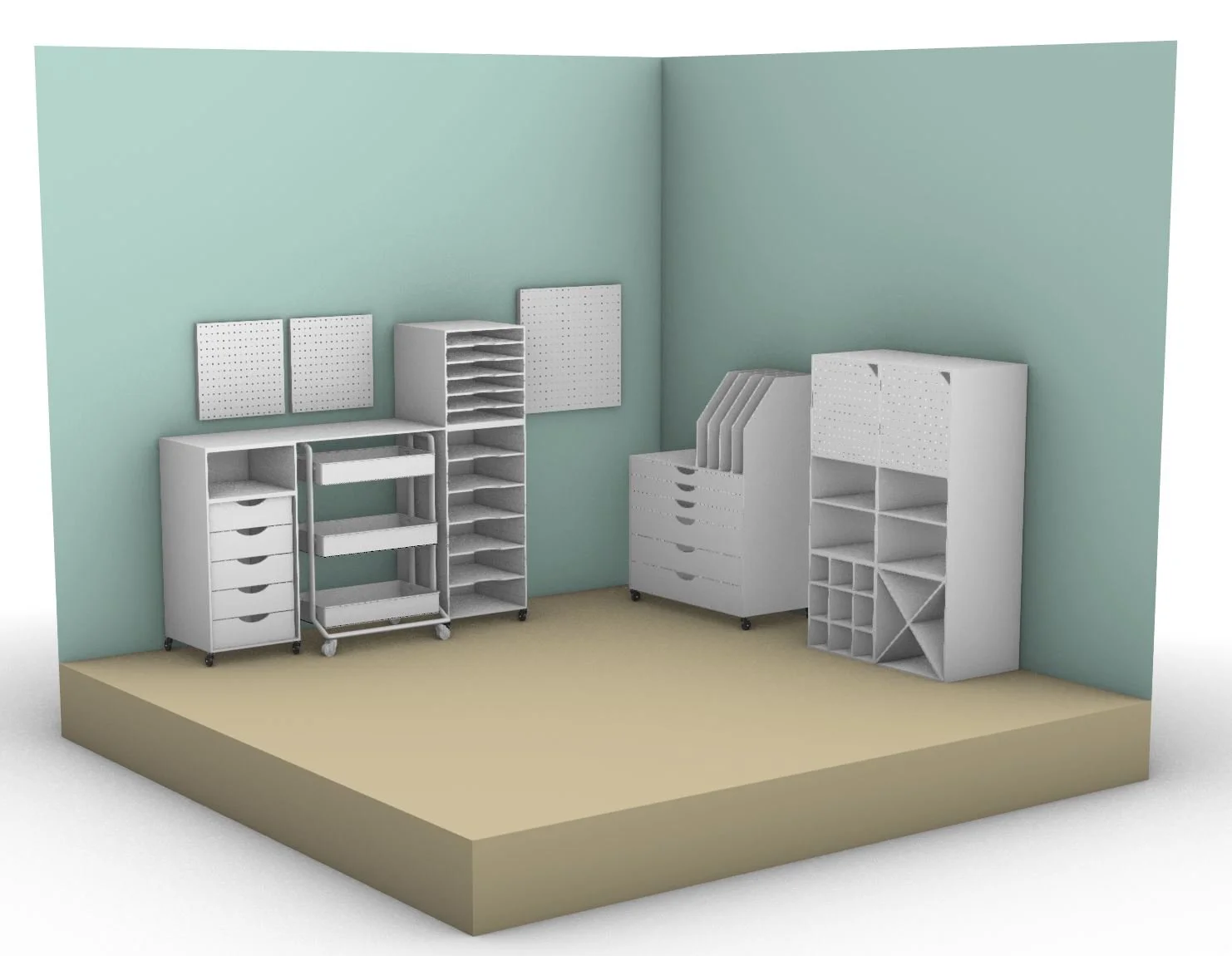 Using the Michael’s Simply Tidy Modular Furniture, create a layout for various craft room sizes and needs.
